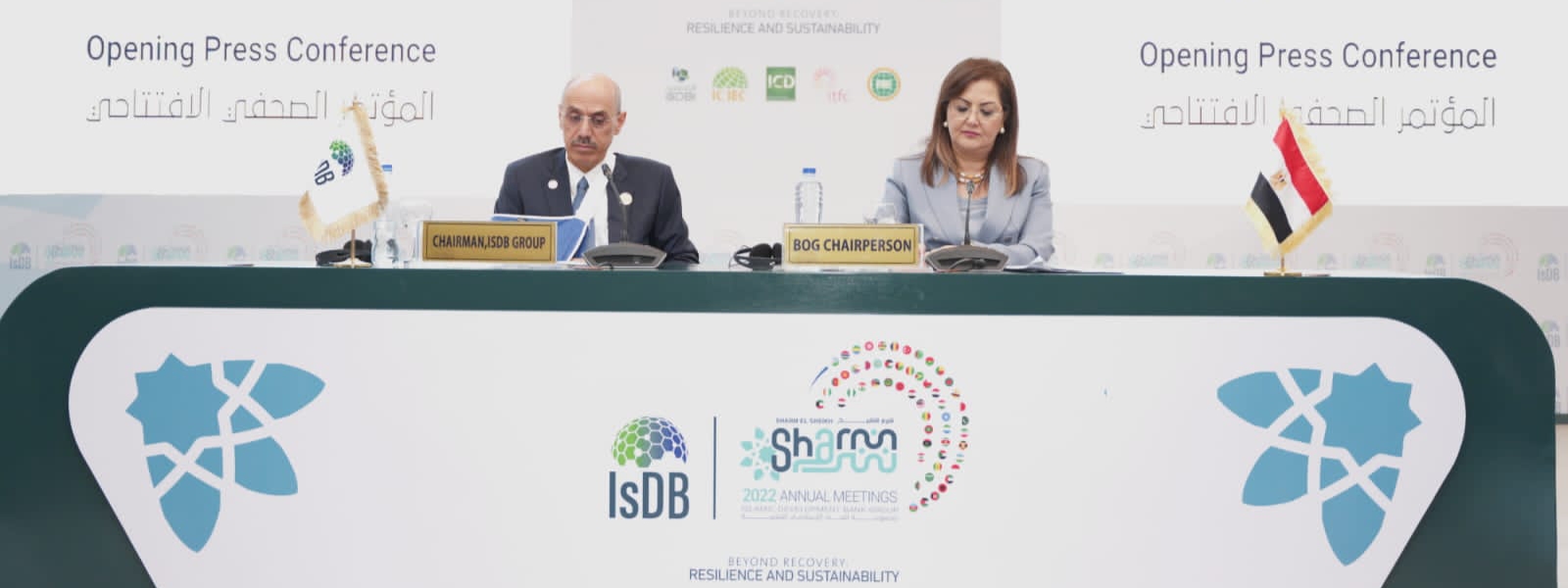 خلال المؤتمر الصحفي المنعقد على هامش الاجتماعات السنوية للبنك الإسلامي بشرم الشيخ وزيرة التخطيط والتنمية الاقتصادية ورئيس مجلس محافظي البنك: الاجتماعات هذا العام تشهد عدد غير مسبوق من المشاركين وصل إلى 5 آلاف مشارك