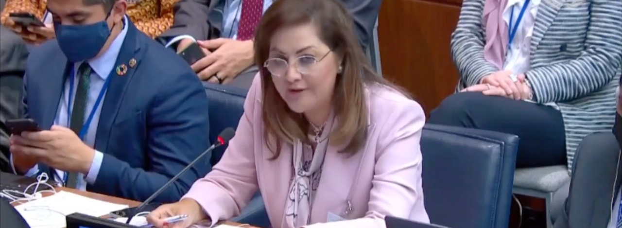 H.E. Dr. Hala El-Said, Minister of Planning and Economic Development, representing Egypt, participated on Thursday in the "Messages from the Regions" session, which was held within the activities of the High-Level Political Forum (HLPF) on Sustainable Development 2022 at the United Nations Headquarters in New York. The Forum is being held under the theme of “Building Back Better after the COVID-19 Pandemic” while advancing the full implementation of the 2030 Agenda for Sustainable Development.