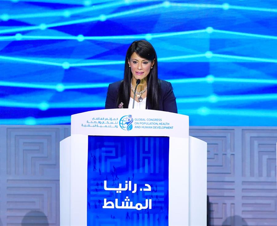 وزيرة التخطيط والتنمية الاقتصادية والتعاون الدولي خلال الجلسة الافتتاحية بالنسخة الثالثة للمؤتمر العالمي للسكان والصحة والتنمية البشرية بحضور دولة رئيس الوزراء