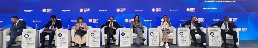 Dr. Hala El-Said also took part in a session titled "Role of BRICS in Ensuring Global Food Security," where she pointed to the Egyptian government's efforts to ensure food and water security. She referred to the launch of the Food and Agriculture for Sustainable Transformation (FAST) initiative by the Ministry of Agriculture and Land Reclamation in collaboration with the Food and Agriculture Organization of the United Nations (FAO) during the 27th Conference of the Parties. Among the six pillars of Egypt’s national strategy for food security are horizontal expansion by adding new lands considering available resources, implementing modern agricultural practices, enhancing the competitiveness of agricultural exports, and boosting activities in livestock, poultry, and fish production.