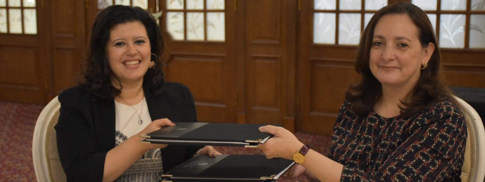 Ms. Sarah Tawfiq Hammouda, Program Officer for Development Agenda 2063 in the Executive Secretariat of the Mechanism, received the Memorandum of Understanding on behalf of Dr. Eddie Maluka, Executive Director of the African Peer Reference Mechanism (APRM).